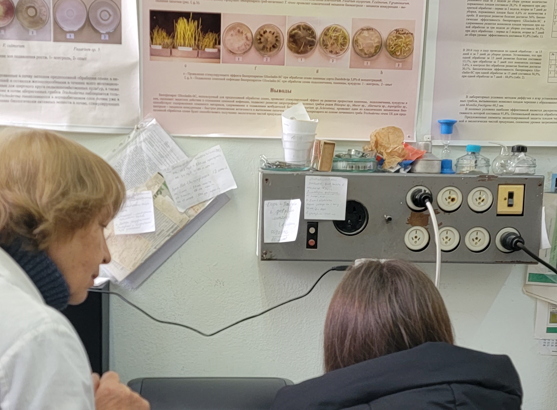 Ulterior, vizita a continuat în Laboratorul Fitopatologie și Biotehnologie, condus de dr. Aurelia STÎNGACI, care a prezentat direcțiile de cercetare a laboratorului.