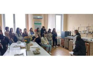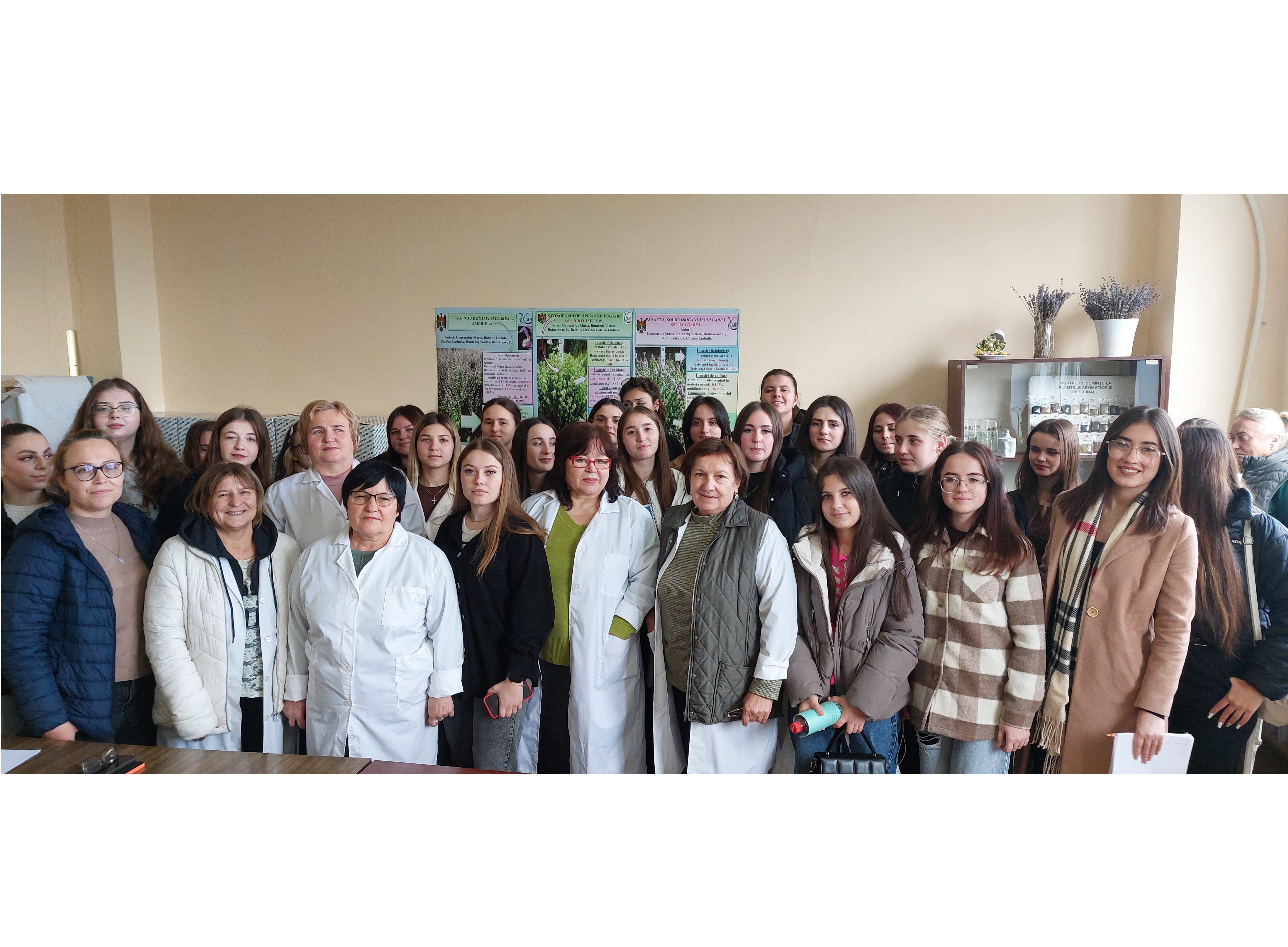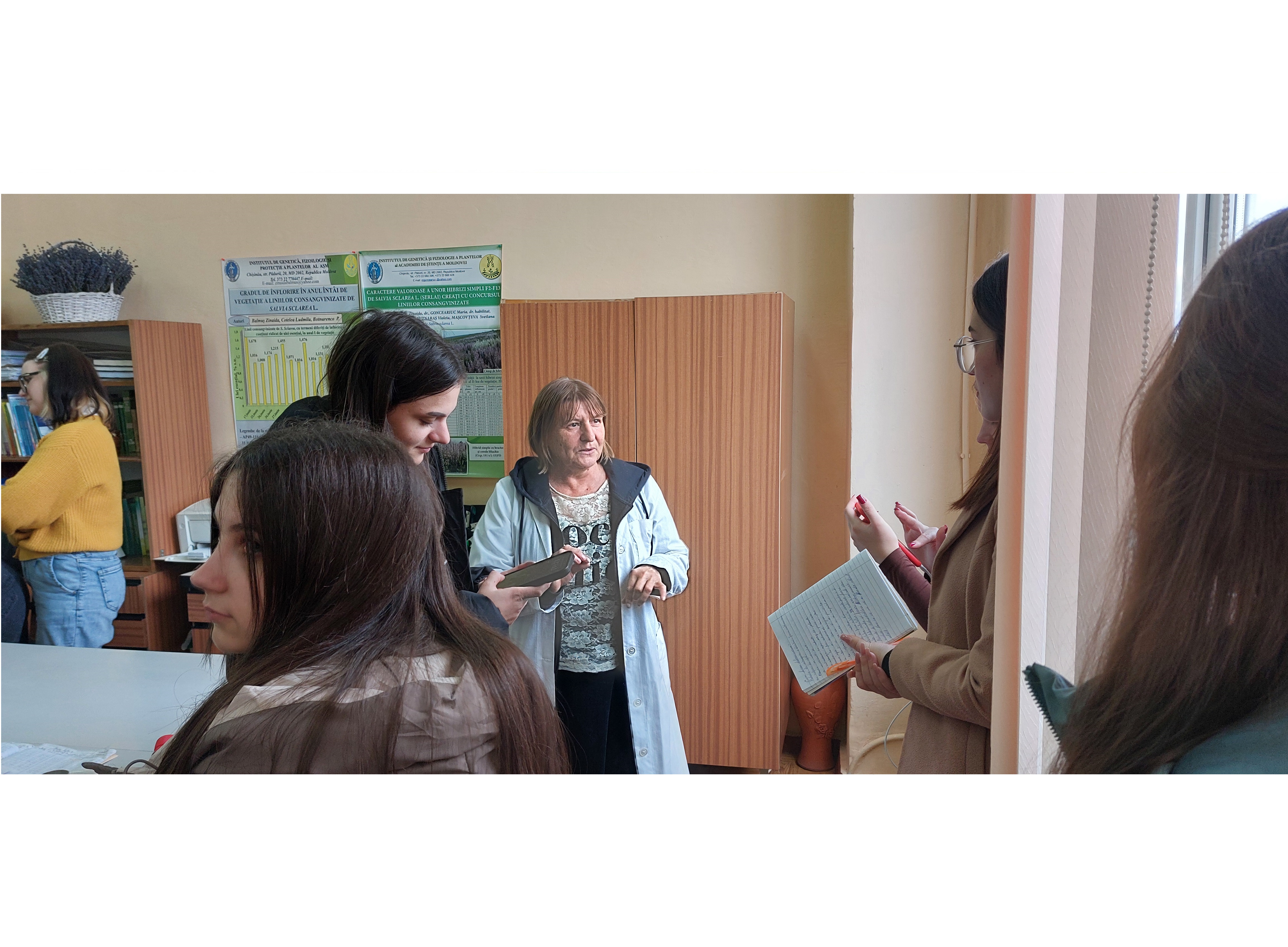 Vizita a început în cadrul Laboratorului Plante Aromatice și Medicinale, condus de dr. Zinaida BALMUȘ, conferențiar cercetător, care a demonstrat infrastructura de cercetare disponibilă, privind tehnicile de separare a uleiului esențial și colecția de germoplasmă de plante aromatice și medicinale. Șefa laboratorului a expus importanța plantelor aromatice, medicinale și condimentare, menționând că utilizarea acestora în scopuri terapeutice se bazează pe principiile active, compușii care îi sintetizează şi acumulează. Elevii au fost familiarizați cu rezultatele cercetărilor efectuate în cadrul Laboratorului Plante Aromatice și Medicinale la speciile: Lavandula angustifolia Mill. (levănțică) și Salvia sclarea L. (șerlai).