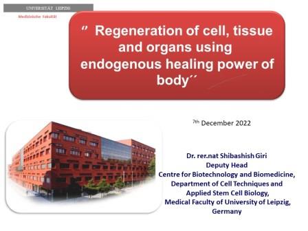 O parte considerabilă a comunicării a vizat aplicarea factorilor genetici și epigenetici în stimularea activității proliferative ale celulelor și țesuturilor, în particular diverse aspect ale medicinii regenerative. În acest context medicina regenerativă integrează un domeniu tehnologic cuprinzător care include biologia celulelor stem, adică materiale „vii”, ingineria țesuturilor, nanotehnologie și analiza genomului funcțional. Fundamentarea acestui nou domeniu se află în tehnologia medicală și analiza funcțională a genomului. Conform celor expuse de Dr Giri, în cadrul centrului ce îl reprezintă, medicina regenerativă se ocupă de cele trei aspecte care sunt cele mai importante pentru omenire și intenționează să dezvolte răspunsuri fundamental noi în ceea ce privește traumă, îmbătrânirea și boală- sub diversele sale forme.